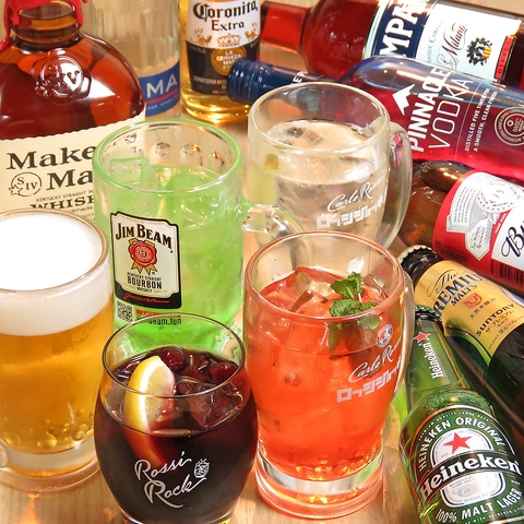 たこ焼き、串カツによく合う、ビール、ハイボール、ワイン等様々なお酒をご用意。特に、カクテルはジン、ウォッカ、カシス系等、沢山取り揃えてあります。もちろん、お酒の飲めない方やお子様にもう喜んでいただけるソフトドリンクも種類豊富!食べ放題飲み放題のある居酒屋です♪