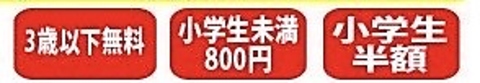 3歳以下無料 小学生未満800円 小学生半額 中学生からは通常料金となっており、小さなお子様連れのご家族にも財布に優しい料金体制となっております。