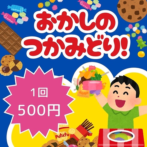 ≪1回500円≫お子様にも楽しんで頂きたく、お菓子のつかみ取りを始めました♪ご飲食頂いたお客様限定です!