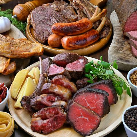 手間を惜しまず丁寧に...。厳選されたお肉は国産牛を使用しており、素材を熟練の技で仕上げます。人気のステーキやグリル、パスタやピザなど、自慢の逸品をご用意しております。季節野菜を使ったメニューも豊富にお愉しみ頂けます。