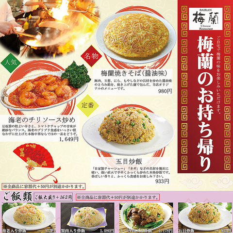 ご自宅でも本格的中華料理を楽しめるテイクアウト承り中。