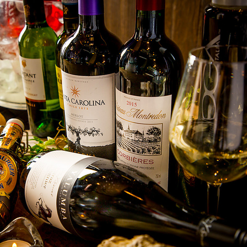 ワイン60種類・カクテルなども時間無制限で飲み放題!