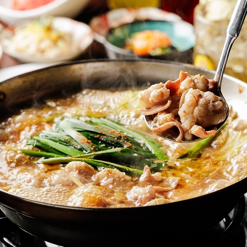 ぷりぷりの国産牛モツを贅沢に使用した牛もつ鍋!大山どりの旨味が、寒い季節を彩ります。野菜もたっぷりで、ヘルシーなのにボリューム満点◎お友達やご家族とシェアしながら、会話も自然に弾む楽しいひとときをどうぞ。さらに、シメには旨味たっぷりのスープで作る雑炊や中華麺もおすすめ!