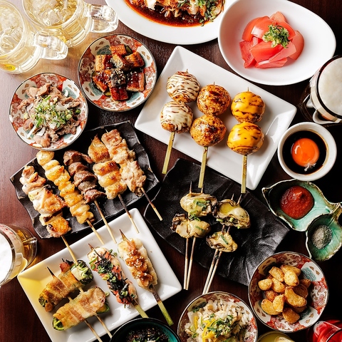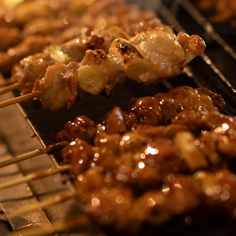 手羽元とむね肉の間の『ふりそで』ともいわれる希少部位。黄金色に焼かれた皮はパリッと、身はふっくらジューシーになるように丁寧に焼き上げます。他にも、人気メニュー「王様レバー」や「ふんわりつくね」など名物串各種取り揃えております!お友達とシェアしながら楽しめるので、会話も自然に弾み写真映えもばっちり♪