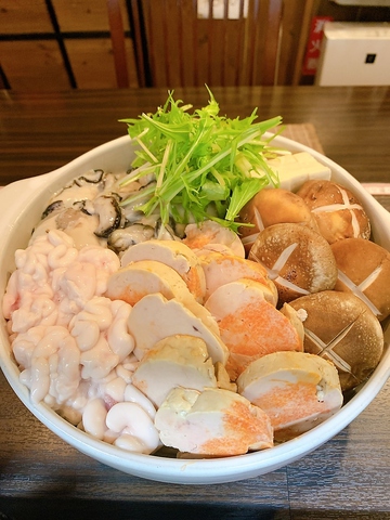 あん肝、牡蠣、真鱈白子が乗った大変贅沢な鍋です。食材無くなり次第完売となります。冬季限定です。1人前から注文可。