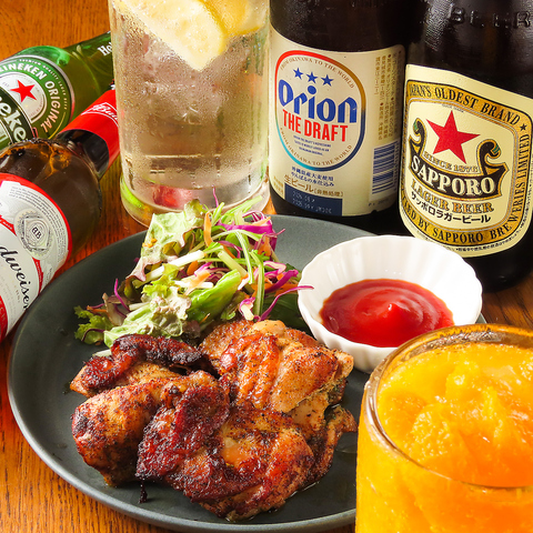 スパイシーな香りが漂う、ジャークチキンはいかがですか?ジューシーなチキンにスパイスが絶妙に絡み合い、お酒との相性もバッチリ◎やみつきになること間違いなしの一品を是非ご堪能ください♪