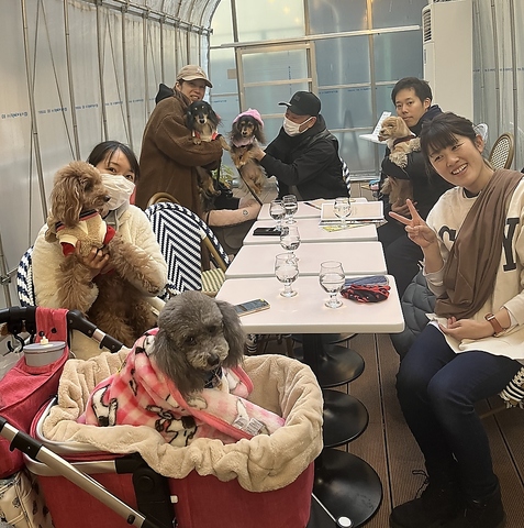 ペットと一緒に楽しめる、貸切にも対応可能な新スペースが誕生しました!寒い日でも快適に過ごせる全天候型リビングスペース仕様で、心地よい開放感をそのままに。ペット同伴OKなので、大切な家族と一緒にお食事やくつろぎのひとときを楽しめます。