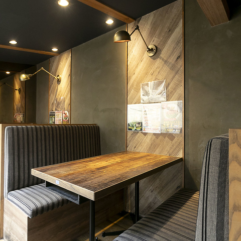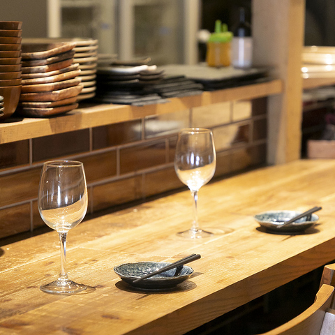デザイナー監修の店内は長屋をリノベーション。カウンター席はハイチェア席でデートや記念日利用にピッタリ♪L字カウンターになっているので、3~4名様での仕事帰りのサク飲みにもご利用頂けます!