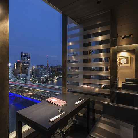 大川の夜景を一望できるカップルシートを完備!ソファーでゆったりおくつろぎいただきながら、特別なお相手と素敵な時間をお過ごし下さい。