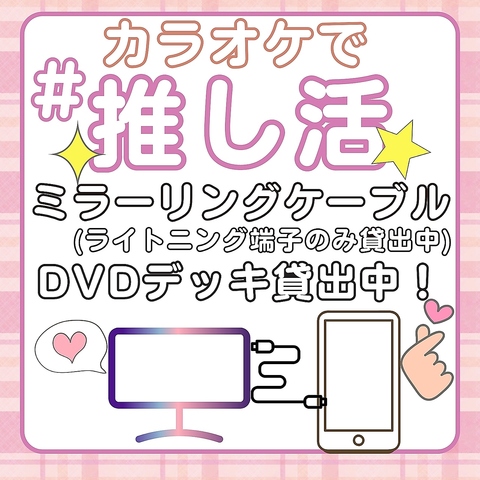 DVDデッキケーブル貸出中 ※ミラーリング制限されている作品やコンテンツの視聴は出来ません。ご注意下さい