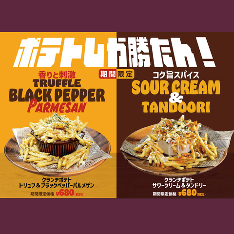 香りと刺激!クランチポテト トリュフ&ブラックペッパーパルメザン。コク旨スパイス!クランチポテトサワークリーム&タンドリー。