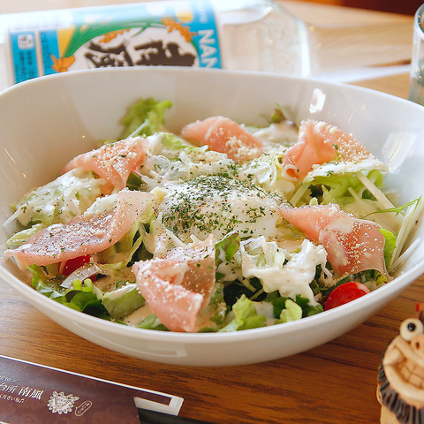 生ハムと温泉玉子のシーザーサラダ