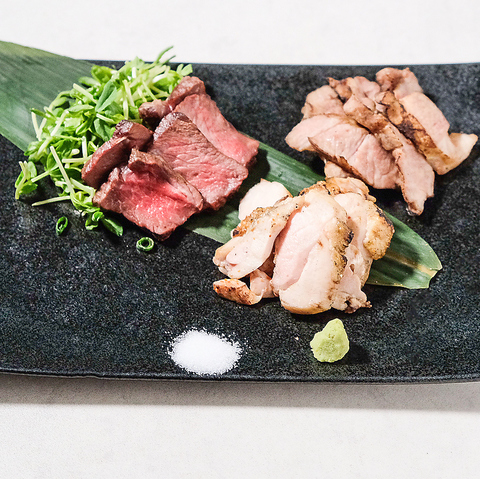 とろける脂の甘みと赤身の旨みが響き合う「肉寿司4種食べ比べ」は、まさに至高の逸品です。お洒落な2階席で、お酒と共に一貫ごとの個性を堪能する贅沢。目も舌も喜ぶ、特別なひとときをどうぞ#旭川#居酒屋#中心部#海鮮#焼鳥#個室#完全個室