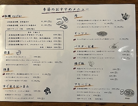 広島産の新鮮な牡蠣や千葉県の北総の豚肉を使用したミラノ深津列など、期間限定で楽しめる料理が豊富です
