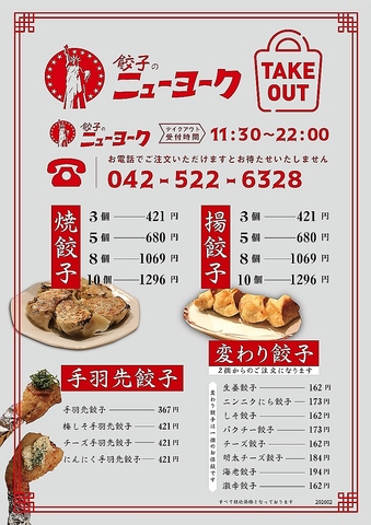 餃子のニューヨーク テイクアウト 2026/02/04 更新