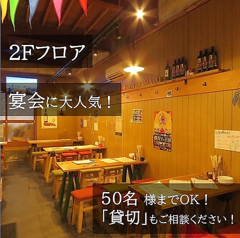二階は広々とした空間で最大50名までご利用可能!大人数の宴会や各種パーティにおすすめ◎