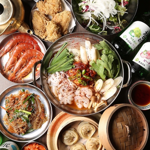 飲み会や歓迎会におすすめの飲み放題付き韓国餃子鍋のコースが3500円ポッキリ!美酢ハイボールや定番サワーはもちろんマッコリもOKの飲み放題120分が付いた9品のコースです!会社の宴会や打ち上げにおすすめ!少人数のご利用に個室もご用意しております。団体様は最大100名様までOKの広々店内です!※写真はイメージです
