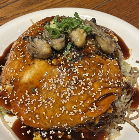 これ1枚で広島県。名物の牡蠣、がんす、コウネを使用したスペシャルお好み焼き