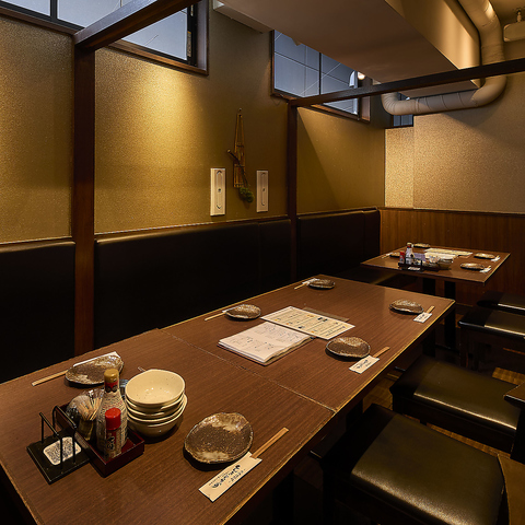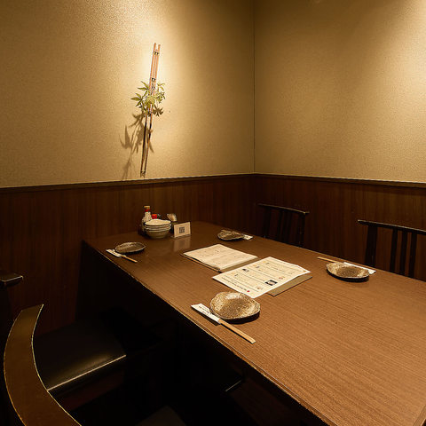 【2名様~利用可!個室完備】プライベート空間溢れる、少人数様用の完全個室。接待のご利用も多く、大切な商談をする際にもお勧めです。お客様とのゆったりとくつろぎの時間を楽しむ宴席にも最適のお部屋です。その他、記念日やご家族のお集まりにもご利用いただけます。