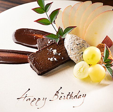 お誕生日やお祝い用のデザートプレートをご用意します!「Happy Birthday」などメッセージは事前にお知らせ下さい。お値段は内容により変動しますのでこちらもお気軽にご相談下さい。