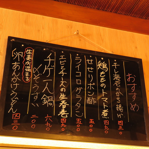 当店の創作居酒屋メニューは、仕入れによって日替わりで変わる新鮮で多彩な品々が揃っています☆ お一人様でも楽しめる小皿メニューを多数ご用意しております♪ 季節の具材を使用した土鍋炊き込みご飯や、週末限定の前菜盛合せなど旬の食材を活かしたお料理をご用意しております。 友人や家族との楽しいひとときにぴったり!