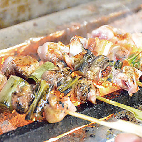 当店メイン料理、備長炭炭火焼き鳥。 厳選した鶏に無添加の塩、タレが自慢です。強い火力ではなくじっくり中まで火を通すことで宮崎鶏本来のジューシーさが味わえます☆宴会以外でもサク飲み、女子会、学生にもご利用頂けます!!