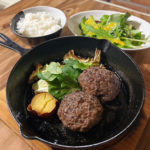 当店の炭火焼き和牛ハンバーグは店舗で挽きたての和牛を丁寧に練り上げて低温で焼き、仕上げに備長炭で香ばしくふっくらと焼き上げます。さらに無添加にこだわり、小麦.乳製品不使用ですのでアレルギーのある方も安心してお食事をお楽しみいただけます。