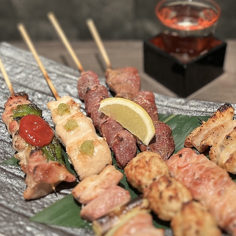オーナーが30年前に始めた10数坪の小さい焼き鳥屋から継ぎ足しで守られてる店外不出の秘伝のタレ。一本一本手打ちで刺した焼き鳥を一度秘伝のタレにくぐらせ備長白炭で旨さを閉じ込め焼き上げる。仕上げに今一度 秘伝のタレにくぐらせれば…この続きは実際に確かめに来て下さい