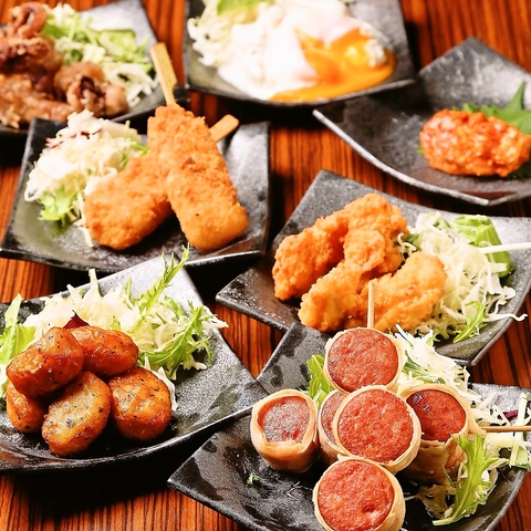 創作料理が食べ放題!!食後のデザートも充実なので女性にもオススメ♪みんな大満足の宴会、ワガママな女子会、コンパまで!5名様以上の場合は、先出し料理として、枝豆、シーザーサラダ、揚物盛合せをご用意しております。