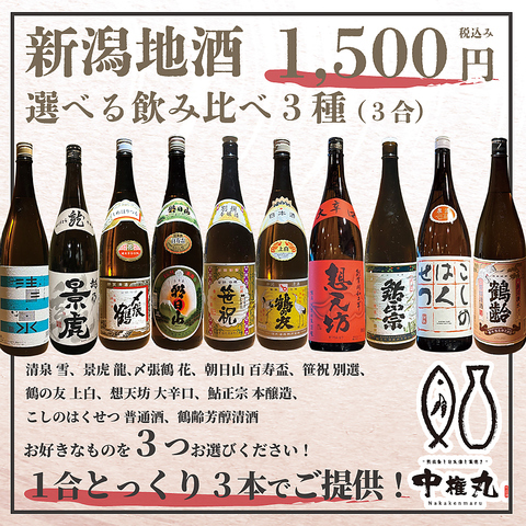 | ★オプション★ | +500円で地酒5種も飲み放題可能◎景虎、清泉、〆張、笹祝、朝日山 |
