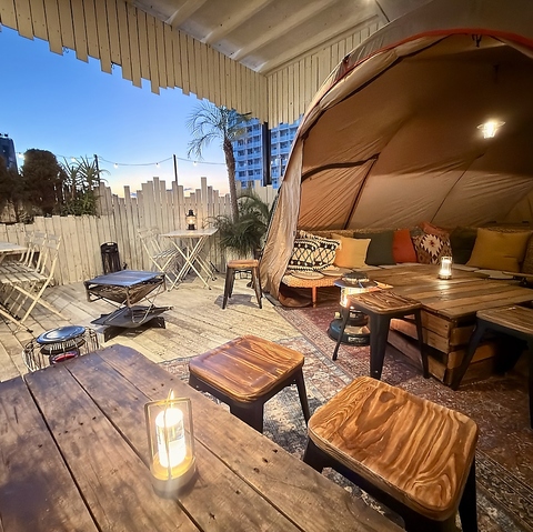 | 貸切 | 25名様×1 | 完全個室のラグジュアリースペース♪テント内でゆったりとお寛ぎ頂けます!店内は貸切でのご案内になるので、テラス席をご利用頂ければ最大20名までご案内が可能!記念日・誕生日等のサプライズも承っております。お気軽にお問い合わせください。 |