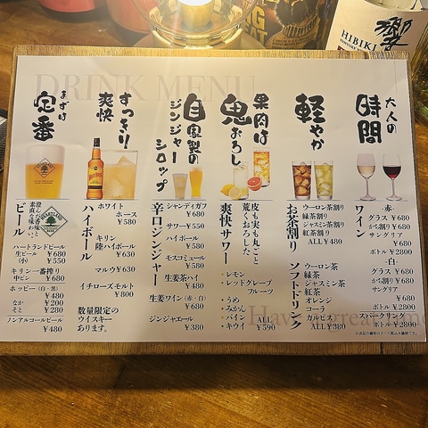 | ハイボール | ホワイトホースハイボール コークハイボール レモンハイボール |