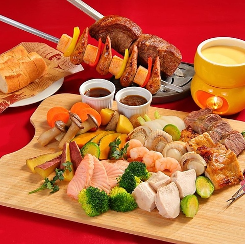 シュラスコ&チーズフォンデュのセット 3月末迄の限定メニューです。
