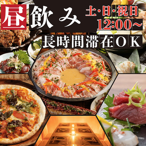 昼飲みやランチ会でも♪土・日・祝日は12:00~営業!時間制限なしで長時間滞在も可能◎