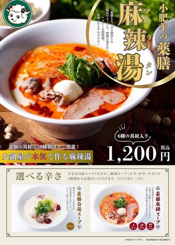 中国に450店舗以上ある小肥羊が日本へ。その小肥羊の火鍋スープを作れるのは、「鍋師」の称号を与えられた者だけ。門外不出、秘伝のレシピで作られた火鍋スープは、肉類をよりジューシーに、海鮮はより味わい深く仕上げます。