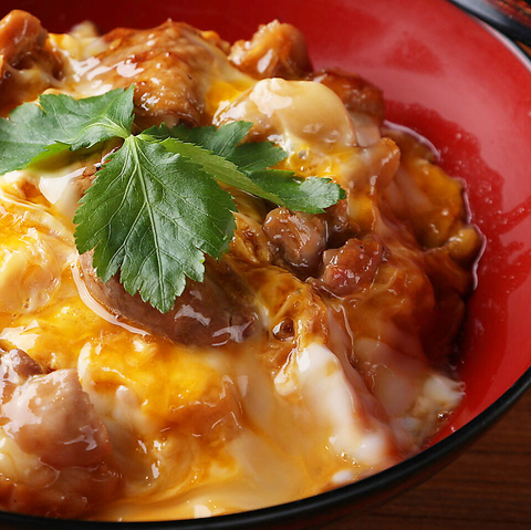 比内地鶏のもも肉を炭火で炙り使用。半熟に仕上げた親子丼は絶品です。ランチタイムでも一番人気の商品です!