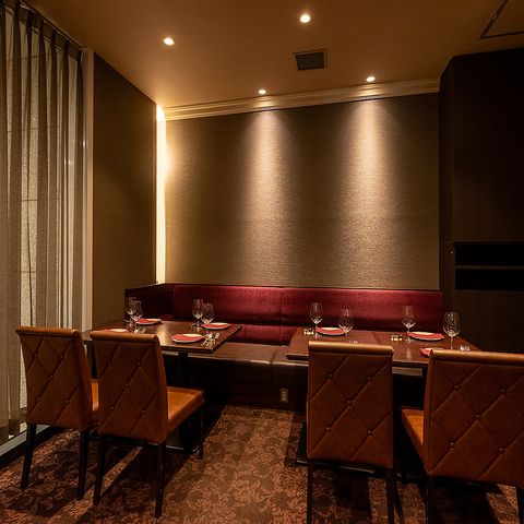 5名~20名様でご利用いただける完全個室をご用意しております。ゆったりとした造りで、高級感あふれるラグジュアリーな雰囲気が魅力。女子会や誕生日会はもちろん、大切な接待などフォーマルなシーンにも最適です。
