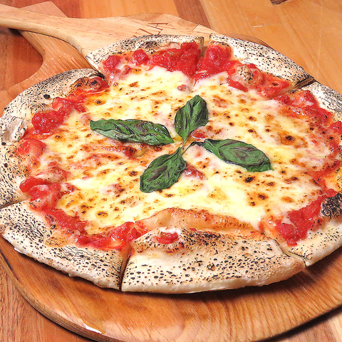 ナポリピッツァの代表…トマトソースの上にモッツァとバジルを乗せたピッツァ。