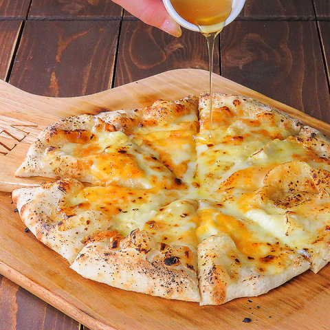 チーズ好きにはたまらない!カマンベールチーズ、チェダーチーズ、パルメザンチーズ、モッツァレラ!お好みではちみつも!