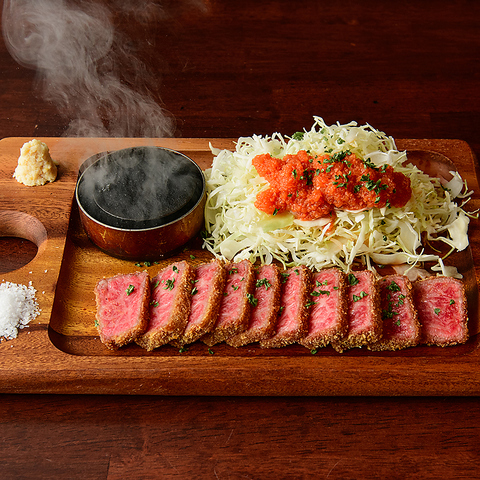 A5ランクの銘柄牛内モモの"黒毛和牛の塩レアカツ"ワインとの相性も最高です!