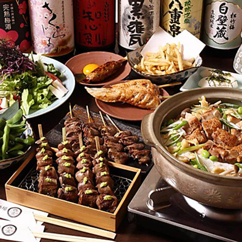 鶏にこだわる酉楽のあったかもつ鍋コースは串焼きや一品料理に2H飲み放題付で\4000♪忘新年会や歓送迎会に