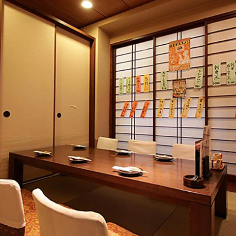 店内はゆったり落ち着く和風の造り。カウンターでサクっと一杯。ご家族でお食事。デートでまったりも◎