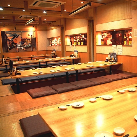 【掘りごたつでゆったり宴会】長時間の宴会でも脚を伸ばしながら寛げる掘りごたつございます。快適な空間で大人数の飲み会にもしっかり対応◎宴会向けの飲み放題付きコースや、幹事様にも嬉しいクーポンも多数ご用意しております!仕事終わりにも気軽にお立ち寄りください。
