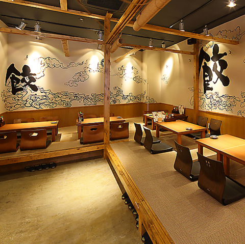 少人数から中規模の飲み会におすすめの座敷は最大24名様迄利用可能。プライベート感溢れるテーブル、脚を伸ばしながらゆったり寛げる掘りごたつ(座敷)個室を完備しています。お得な飲み放題付コースも4000円~種類豊富にご用意していますので、お客様の利用シーン・予算に合わせてご予約ください。宴会,飲み会,女子会に◎