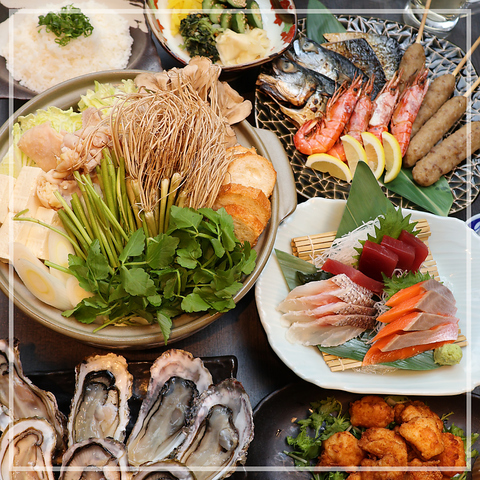 冬の味覚を堪能!仙台セリと牡蠣のしゃぶしゃぶ鍋がメインの全7品。通常7,000円がクーポン利用で6,000円に!地酒含む120分飲み放題付き。さらに+550円でクラフトビールもOK!忘年会にどうぞ。