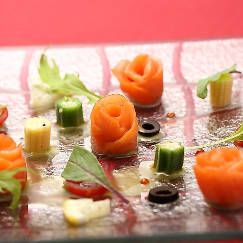 こだわりの旬の食材を利用した宴会コースやイタリアンコースがございます♪完全個室なので、記念日や商談等大切な日にぜひご利用ください。※お写真は一部コースの前菜になります。古民家 イタリアン 君津 記念日 ディナー 隠れ家 完全予約制 全室完全個室 ランチ