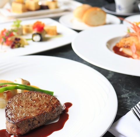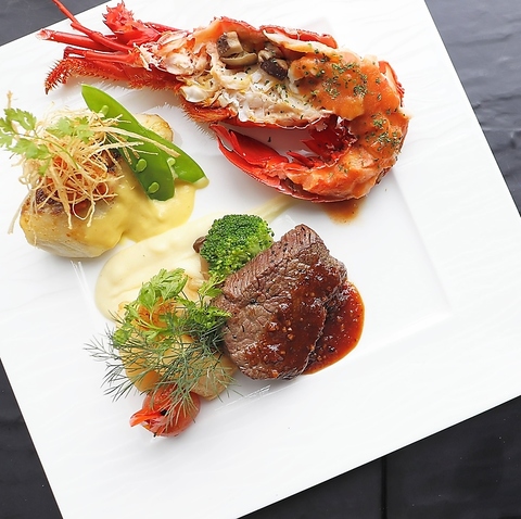 イセエビ・ビーフステーキ・白身魚のソテー!3つが1プレートでお楽しみいただけます☆