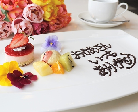 お友達の誕生日や恋人との記念日をお祝いしたい!サプライズしたい!!そんな方にメッセージ入りデザートプレートをプレゼント!前日までのご予約制