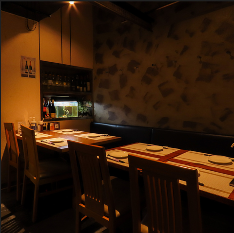 16名-18名 10名様からご利用できます。水槽にも設置しており、お食事しながらお魚の姿を見ることができます。最高リラックスタイムです。スタイリッシュな店内を間接照明がやさしく照らします。貸切予約もOK♪プチパーティーやデートにぜひご利用下さいませ。