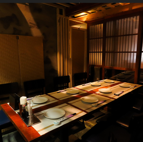 12名様な個室で、9-12名でご利用できます。個室で、スタイリッシュな店内を間接照明がやさしく照らします。貸切予約もOK♪プチパーティーやデートにぜひご利用下さいませ。